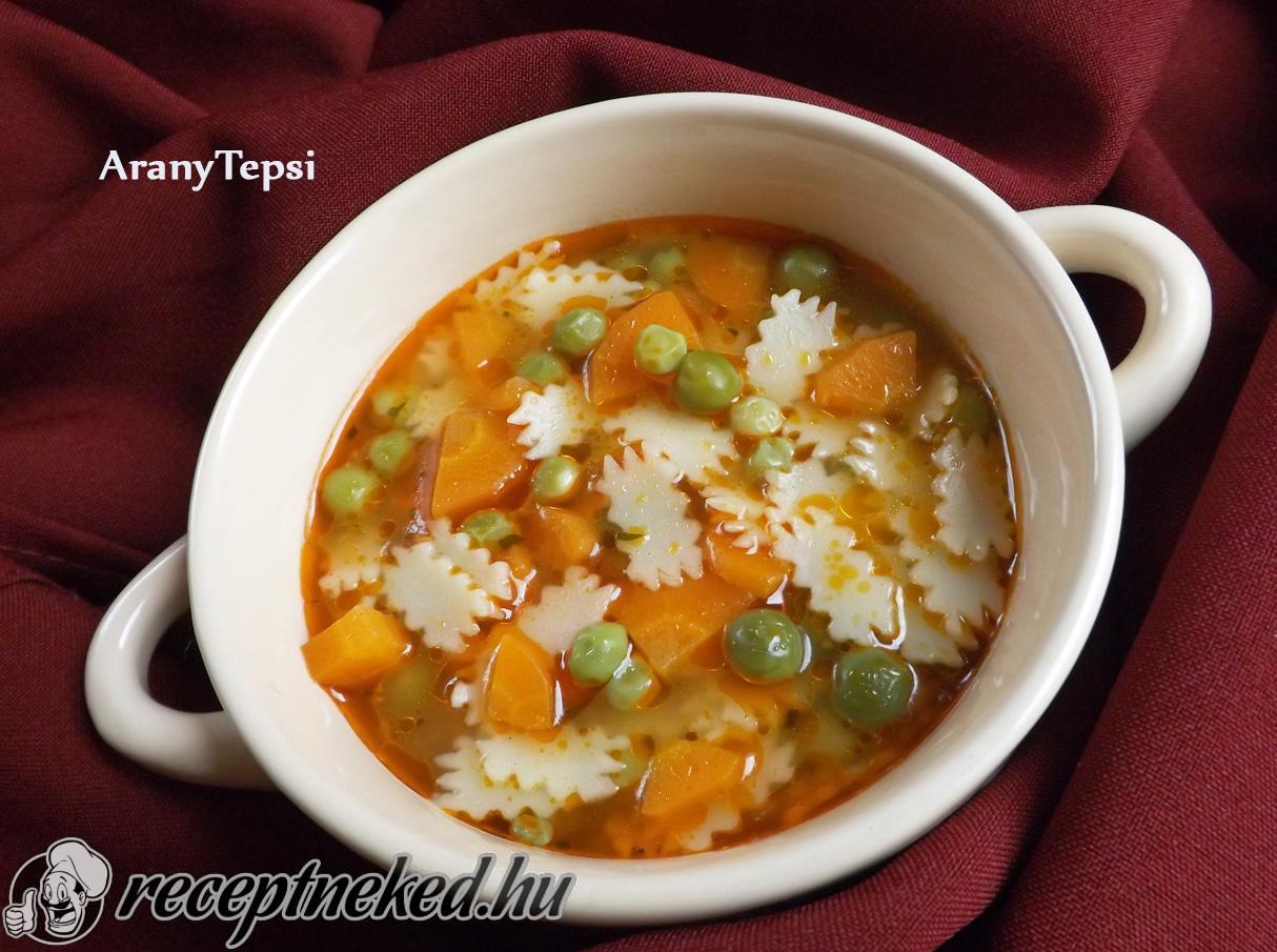 Zöldborsóleves eperlevéllel